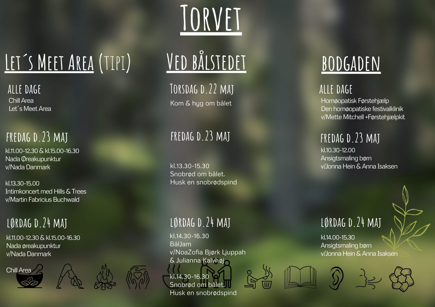 Samtlige aktiviteter (÷ enkeltstående behandlinger) er tilgængelige for alle med festivalsarmbånd.
